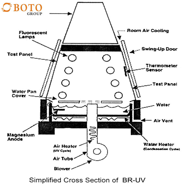 Ruang Uji Penuaan UVmensimulasikan efek merusak paparan luar ruangan jangka panjang dari sinar matahari, panas, kelembaban pada bahan dan pelapis.Ini menghadapkan spesimen ke berbagai kondisi pelapukan - radiasi ultraviolet, kelembaban dan panas untuk menguji kinerja dan meningkatkan kualitas.
